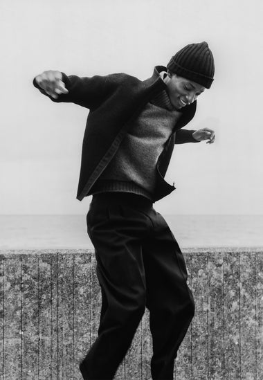 William Waterworth’s photography, together with Joel Kerr’s accompanying film, capture the spirit of a winter beach walk – setting the natural fabrics and rich textures of the collection against weather-worn groynes, windswept grasses, and open skies.