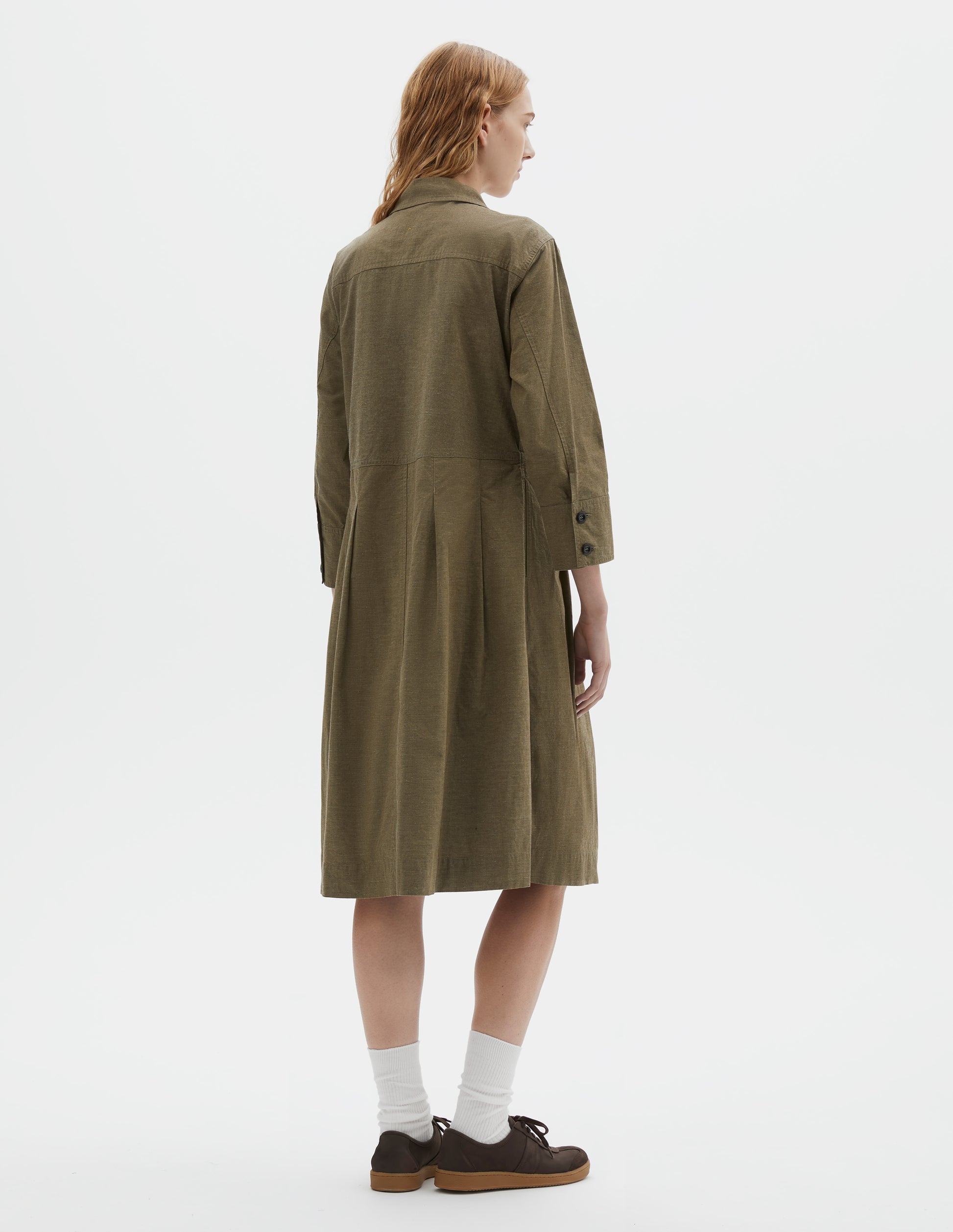 MHL. PLEATED SHIRT DRESS DRY COTTON END ON END MOSS