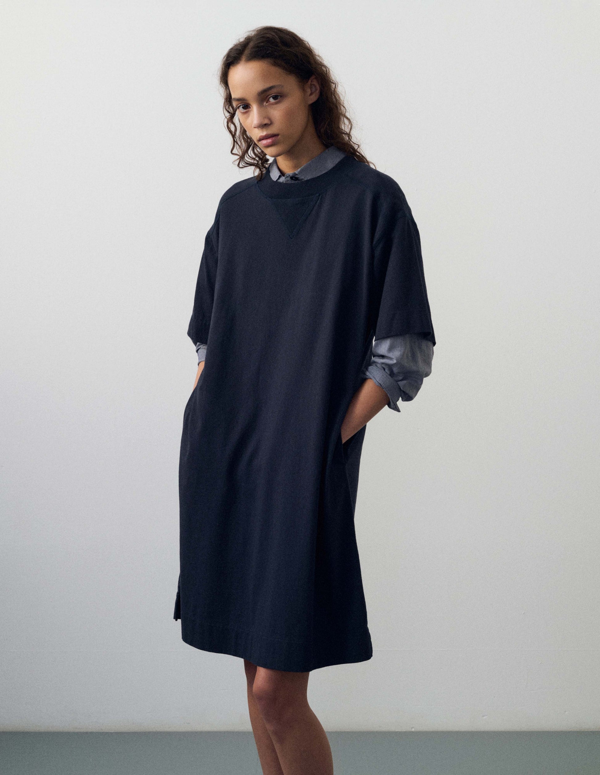 MHL. RELAXED T SHIRT DRESS LIGHTWEIGHT DRY JERSEY INK